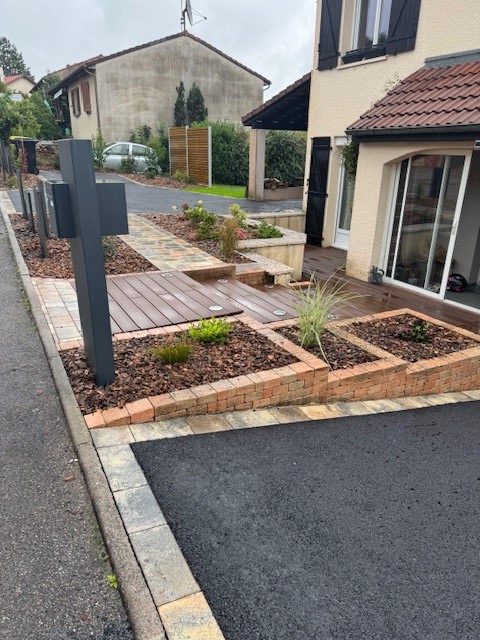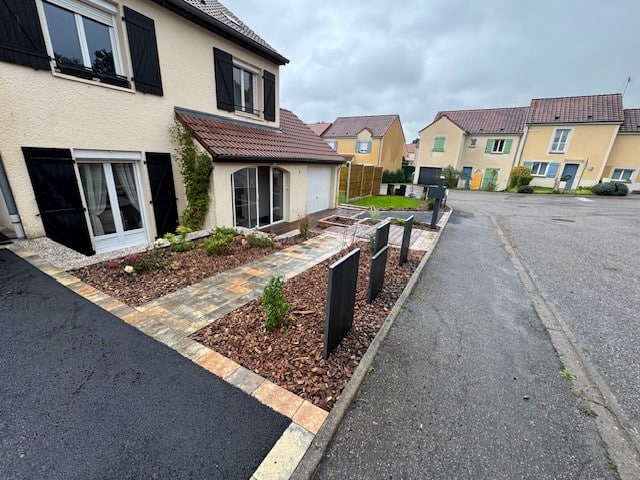 On crée un espace aéré et moderne, parfait pour vous accueillir et vous faire sentir comme chez vous. La pose d’un pavage de couleur dune (avec notre partenaire Kronimus) ajoute un toucher de sophistication et de style à votre entrée, créant une première impression inoubliable.